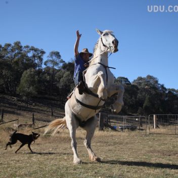 - Mustering display with horse and dog
